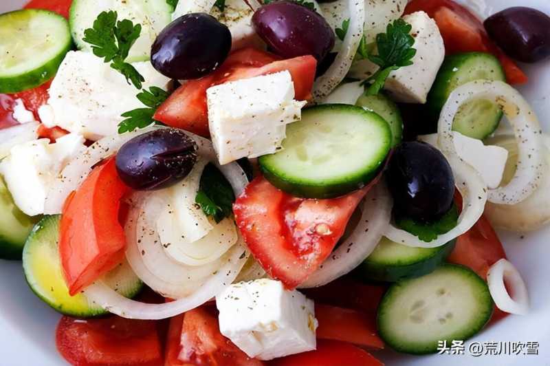 详细介绍:希腊沙拉是希腊当地夏季必备的美食,里面会加入番茄、青椒、洋葱以及菲达干酪和橄榄,口感甜酸,味道很独特。