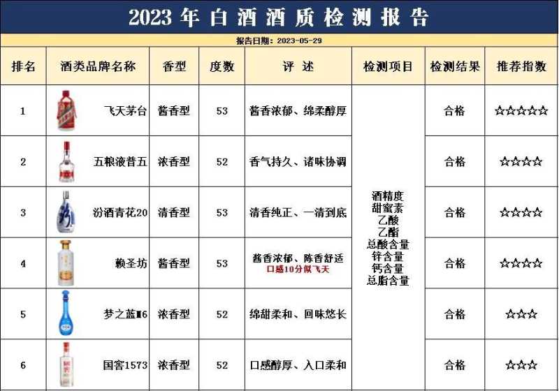 2023白酒抽检报告,这6款酒全场最佳,排名:茅台第1,剑南春第6