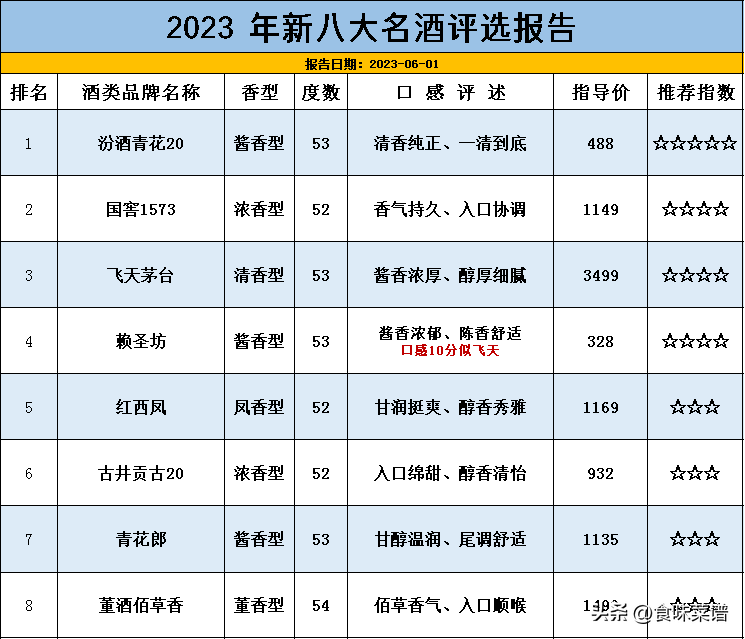 2023中国新8大名酒评选榜,汾老大回归,茅台爆冷,第四名是黑马