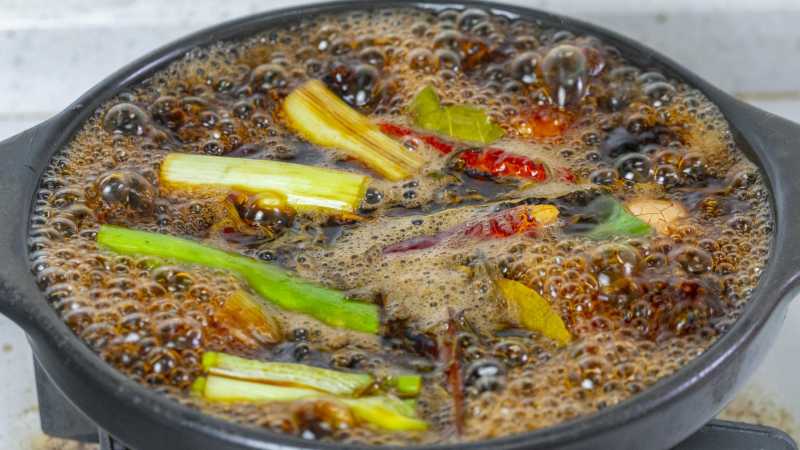 7、茶叶蛋煮好后开盖放凉,然后倒出来,让汤汁完全把蛋浸泡住。