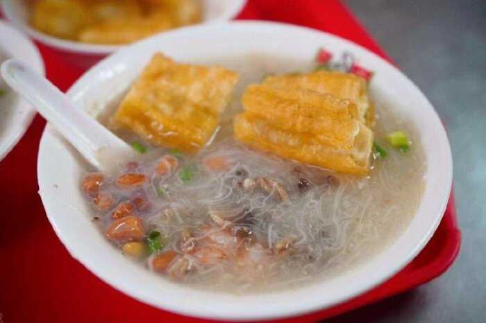 要说什么是面线糊的最佳拍档,现炸油条绝对排第一位。将油条掰成一小块一小块然后浸入面线糊中泡软,这时的油条不仅外皮裹满了面线,还保留了一丝酥脆,非常好吃。