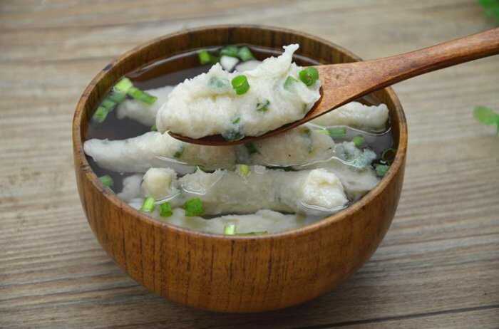 等准备食用的时候,将鱼肉裹上生粉放入开水中,待鱼肉全部浮上锅面,再加入调好的淀粉水进行勾芡,最后盛出加入姜丝、蒜泥、醋等调味。做好的马鲛鱼羹鲜香嫩滑,汤底清甜浓稠,一入口便让人唇齿留香,我想如果能有机会到泉州走一趟,马鲛鱼羹一定得尝一尝。