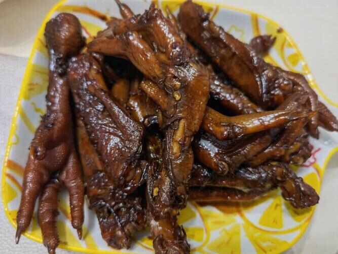 在湖北人的眼中,万物皆可粉蒸。蒸粉的香气在水蒸汽的流窜下从米粉中流出,渗透到食材的每一个肌理,却又最大程度上保留住了食材的原汁原味,这大概就是粉蒸的魅力,粉蒸凤爪也是这样。水蒸汽泡发了凤爪因为油炸而紧致的表皮,蓬松如虎皮,混合着软糯香甜的米粉鲜香扑鼻,入口软糯弹牙,皮酥柔韧,回味无穷。