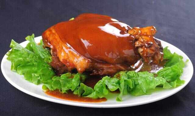 肘子在河北有两种做法非常有名,一是“锅爆肘子”其二就是“鸿宴肘子”两者不分上下。鸿宴肘子制作步骤繁琐,需要将新鲜的猪肘经过焯水,蒸煮,油炸等工序最终才能成菜。一道正宗的鸿宴肘子,肘皮一定是呈带有光泽的深红色的,用筷子就可以将肘皮夹断,放进嘴里皮糯肉嫩,丝丝入味,美不胜收!
