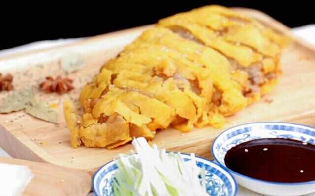 锅爆肘子来源于河北省保定市,这道菜听起来就十分的豪放。这道菜端在桌上的时候你会看到肘子的外表裹上了一层金黄色的脆壳,光是看着就仿佛能感受到外脆里嫩的口感了。尝上一口果真如此,口感层次丰富,外面酥脆的外壳与内里鲜嫩的肘子肉搭配起来别提有多配了,配着不辣的小葱丝和甜面酱一起吃,美味翻倍!