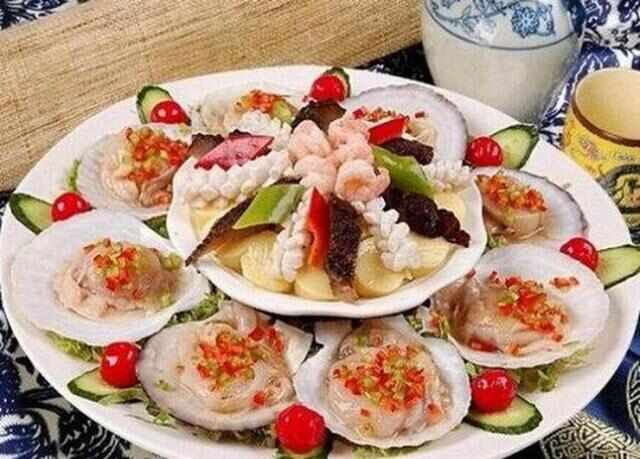 五彩雪花扇贝是一道极其有名的大连特色菜肴,历史悠久,可以用“味美型佳”四个字来形容!制作时要将新鲜的扇贝肉剔下来,在贝壳上用粉丝铺底,加上青豆,小米辣,扇贝肉,最后放上蒜末。整个看起来五彩斑斓,很招人喜欢,吃上一口,唉呀,那叫一个滋味足!蒜香与鲜嫩的扇贝肉的鲜香完美融合,粉丝爽滑,吃了它你就知道它们到底有多么相配了!