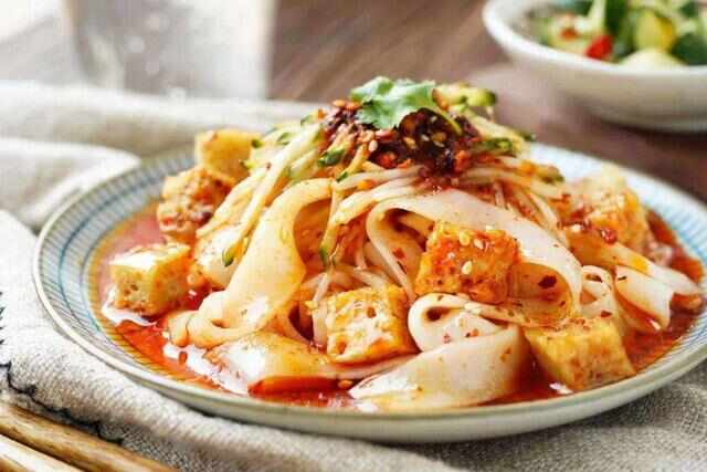 陕西凉皮是非常经典的传统小吃之一,很有特色。陕西凉皮大多数人都喜欢吃凉拌凉皮,唯有汉中地区的人们更偏爱热食。我最喜欢山西凉皮的一大特点就是它可以根据自己的喜好进行调味,口味上包容性更强,要问我的最爱,那还要属麻酱口味的。晶莹剔透的白色光滑凉皮,同时具备“软嫩”“劲道”两大特点,配合着麻酱香气更浓,入口爽滑,唇齿留香,非常开胃,尤其是在夏季一下能吃好几碗!