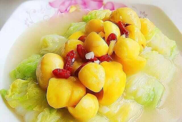栗子扒白菜是唐山一道融合了南北风味的地道美食。选用新鲜的白菜和栗子为主料,辅以鸡肉、火腿等配料,经过精心的烹饪,使得白菜清香,栗子鲜甜。