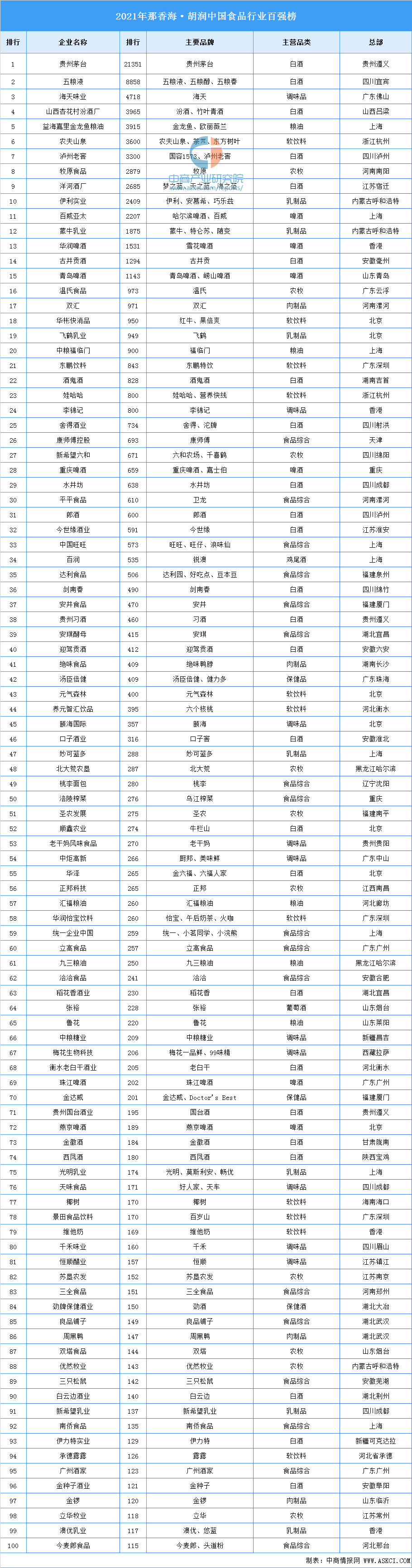 2021年那香海·胡润中国食品行业百强榜中商产业研究院 2021-12-08 09:29