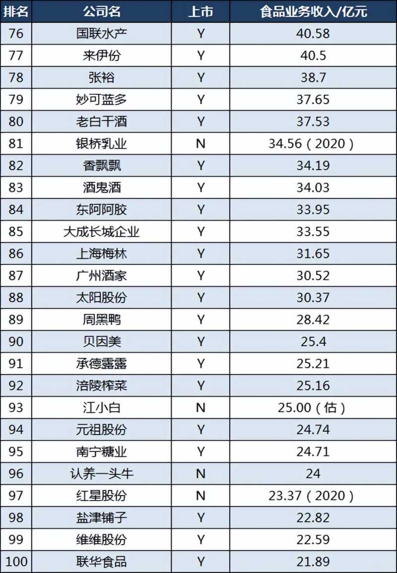 注:排名依据为各企业2021年度食品业务收入,“估”指估算业绩,“2020”指使用2020年度业绩,“财”指使用该企业财年业绩。