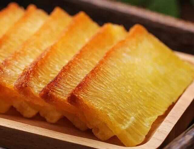 黄金糕是广东省的传统糕点之一,以其金黄色的外观和软糯的口感而受到喜爱。它通常由糯米粉、红豆和糖等原料制成,蒸熟后切成小块,形状像金块,因此得名黄金糕。