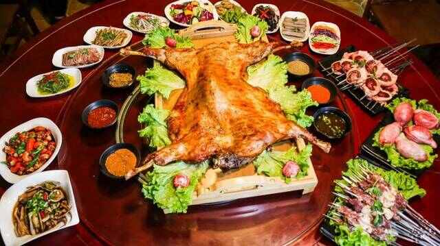 宁夏烤全羊是宁夏地区的传统菜品,以整只羊为主料,经过烤制后,肉质鲜嫩,味道香浓,是宴席上的一道重要菜品。