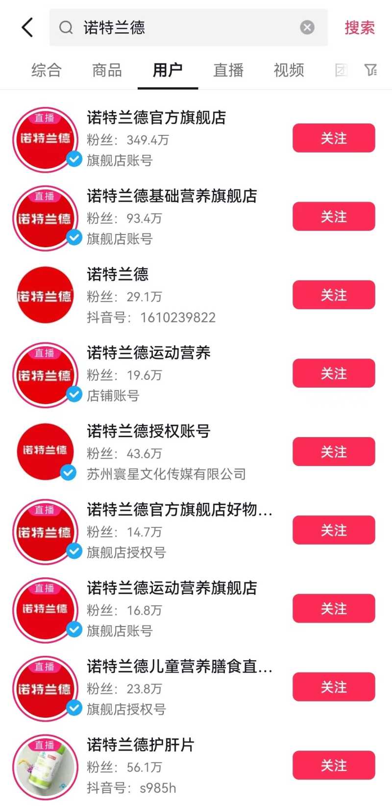 诺特兰德抖音账号矩阵;图片来源:抖音