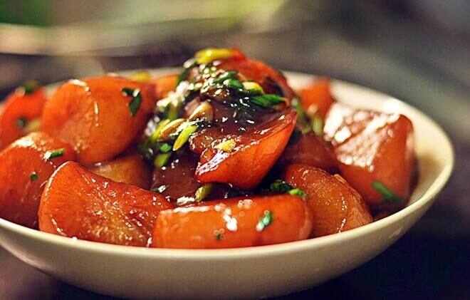 红烧土豆是一道家常菜,将土豆切块后炖煮,加入适量的调味料,炖至土豆软烂入味。它的口感软糯,味道鲜美,是许多人喜爱的素食菜肴之一。