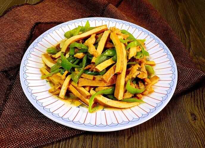 青椒炒豆腐干是一道简单而美味的素食菜肴,以青椒和豆腐干为主料,口感爽脆,味道鲜美。它适合作为一道下饭菜或配菜食用。