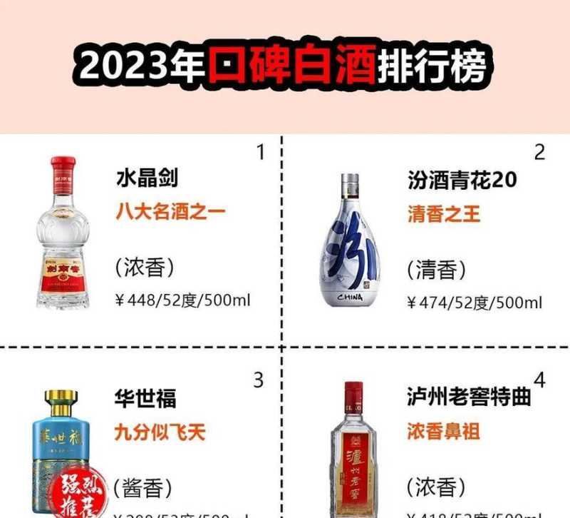 综上所述,2023年最新大牌白酒榜单展示了中国白酒业持续繁荣发展的态势。这些备受瞩目的品牌凭借卓越的品质、独特的风味和强大的品牌影响力,成为中国白酒在国内外市场上的重要代表。相信未来,随着中国白酒业的不断创新与发展,这些品牌将继续在国际舞台上展现光彩,让世界品味到中国白酒的魅力。