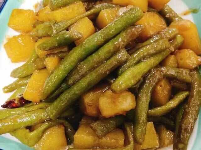 排名第四位的是土豆炖豆角,这道菜在很多铁锅炖的餐厅里经常能够见到,味道很好,也受到很多人的好评。这道菜每次上桌,都要多费两碗米饭,软糯的土豆和豆角,加上美味的排骨,简直是下饭的好菜,排骨炖的是软烂入味,再沾上一些汤汁,简直就是人间美味。