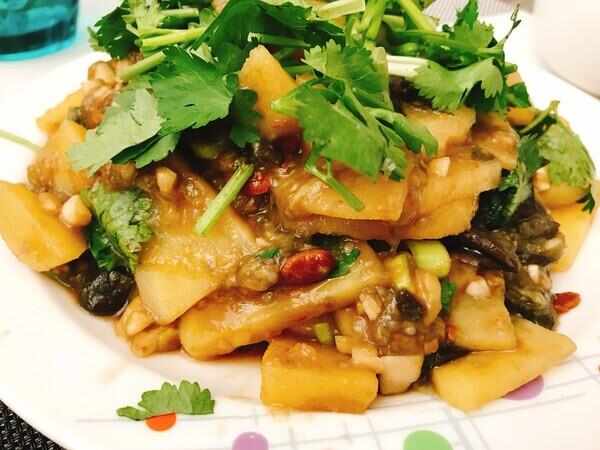 排在第六名的是土豆拌茄子,这道菜可能听起来或者看起来都很朴素,但是吃起来真的很美味。这道菜是辽宁人家家户户都十分爱吃的菜,蒸熟的土豆和茄子拌上咸香的肉酱,再加上点儿葱花,就是很多人家里的晚餐了,简单又美味,很多人一天不吃都会馋。