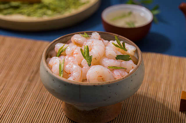 龙井虾仁选用鲜嫩的河虾,配以龙井茶的茶叶水,加上调料炒制而成。口感鲜美,茶香四溢。