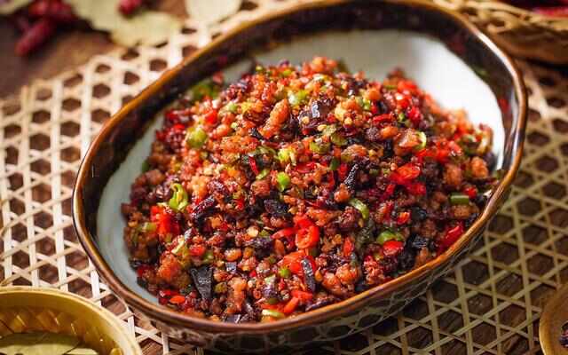 黑三剁是云南的一道传统名菜,以猪肉、木耳、红椒等食材炒制而成。该菜品色彩丰富,口感独特,味道鲜美,是云南人民的家常菜之一。