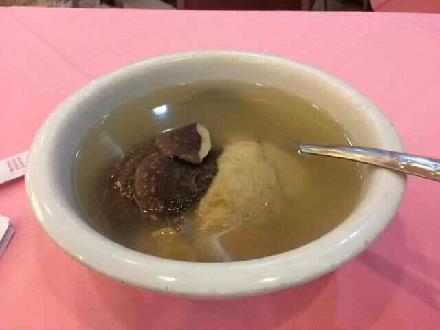 鸡汤汆海蚌是一道福建的特色名菜,是福州地区传统宴席上必备的一道汤菜。使用漳港海蚌、鸡肉作为主料,配以牛肉、猪里脊肉等辅料制作而成的美食。以鲜活海蚌为原料,氽以滚热的鸡汤而成,口味咸鲜味。