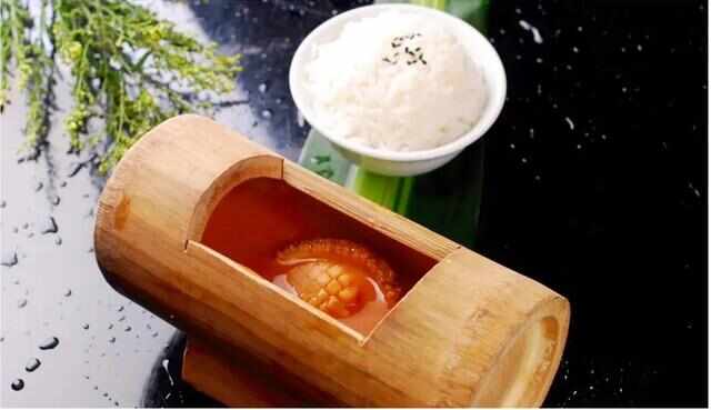 南日鲍是产自福建莆田第一大岛—南日岛的一种鲍鱼,整道菜制作过程中,需要先取高汤下锅烧开,加蚝油、蛤晶、老抽搅匀后,加入南日鲍,再将鲍汁装在竹筒里,放入卤好的鲍鱼,放蒸笼蒸3分钟,配上米饭即可。鲜嫩的鲍鱼肉,夹杂着竹子的清香,吃起来味道是无比鲜美。