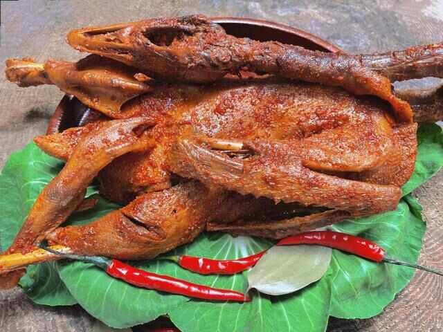熏鹅是福建南平市武夷山市的特色传统名菜,制作历史悠久,可以追溯到唐朝。在制作过程中,需要选用嫩肥的鹅,用特制的腌料腌制一段时间,然后进行熏制,最终得到外焦里嫩、香气四溢的美味熏鹅。