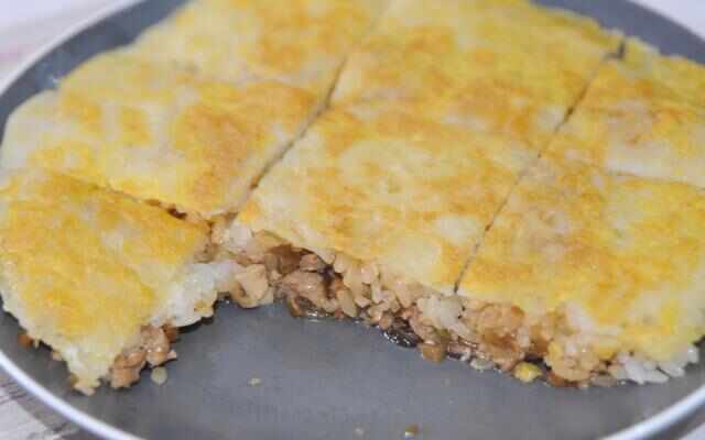 湖北豆皮是湖北十大传统小吃之一,选用优质绿豆,经过浸泡、磨浆、成型等多道工序制作而成,口感细腻、柔嫩,是一道非常受欢迎的小吃。