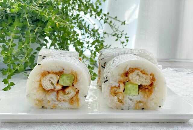 在九十年代前,粢饭团属于甜食。它是用刚出炉的糯米饭,包着油条再撒点白糖做成的,香甜可口。而如今到了近代,大多都以咸口为主了。咸口的是用糯米饭做底,铺上一层脆油条,淋上肉酱,盖上肉松和咸鸡蛋,最后再淋上一层肉酱包裹起来制成。一口咬下去有软糯的糯米,鲜咸的鸡蛋,脆脆的油条和浓郁的肉酱,口感十分丰富。