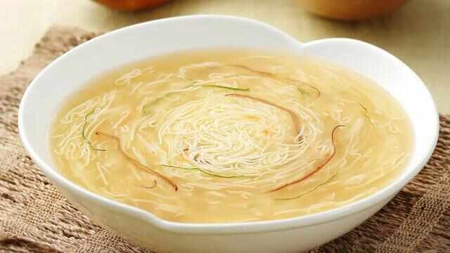 文思豆腐起源于江苏淮安、扬州,这道菜在江苏省也是一道非常出名的传统美食。这道文思豆腐极为考验刀工,豆腐一定要切成细丝且不能断掉,然后温火炖成汤后,喝起来异常的美味。汤水入口,只觉得柔滑而又清醇,再吃上一口豆腐,只觉得入口即化,豆腐之中的豆香味弥漫在嘴中,滋味绵长,让人忍不住闭起眼睛来感受,如此滋味,令每一个品尝过它的客人都回味无穷。