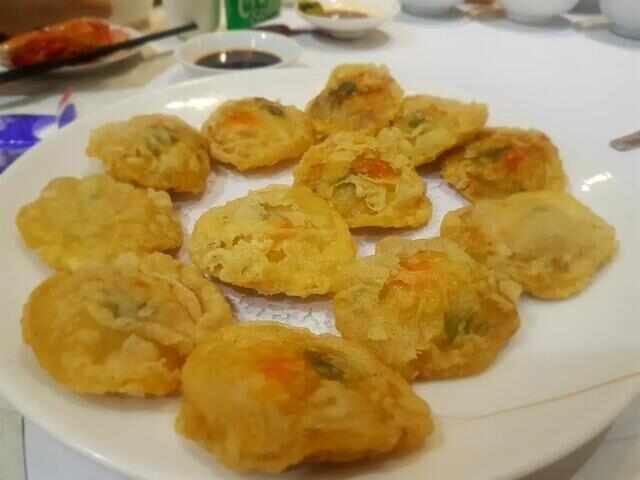 金钱脆蟹盒是澳门人智慧的结晶,甘鲜味美,可以和野鸡卷并称“凤城双绝”。金钱脆蟹盒是在两块圆形猪肉段(冰片肉)中间加入由五花肉、蟹肉、虾仁、冬菇等制成的馅料,再油炸而成。这样做出来的蟹盒金黄酥脆,甜香不腻,外形像金钱大小,所以叫“金钱蟹盒”。