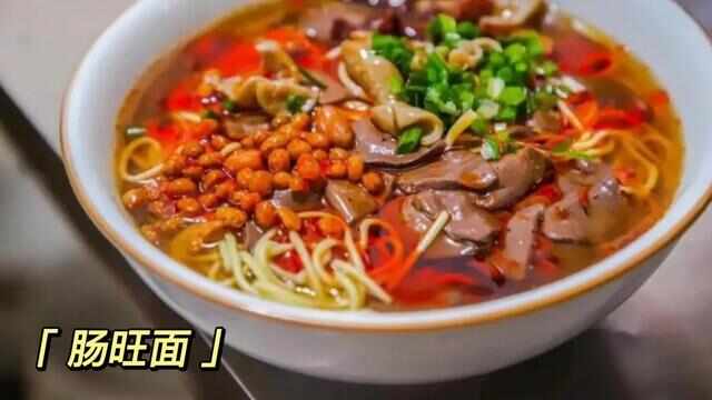 肠旺面是贵阳极负盛名的一种风味小吃,它是由猪大肠、鸡蛋、面条、绿豆芽和油炸猪肉丁调配而成。面条劲道、汤色鲜红、血旺嫩滑、鸡汤油亮而不腻,吃起来辣而不猛,回味悠长。