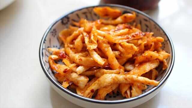 美味的萝卜干是一道历史悠久且风味独特的传统美食,它以新鲜的萝卜为原料,经过了腌制、晾晒等多道工序而成,萝卜干外皮略带硬度,口感具有韧性;内部则是松软、清甜、透着淡淡的咸香味。在美国、日本和韩国等国家,萝卜干作为一种健康美食被广泛食用,甚至一些知名品牌的萝卜干也走进了国际市场,备受消费者青睐。此外萝卜干富含的营养成分,使其本身就成为了一种高营养的食品,而在经过腌制、晾干等工序后,不仅能够更好地保留萝卜中的各种维生素和微量元素,还能够提高其维生素C的含量。因此萝卜干不仅可以作为美食享用,还可以作为一种保健食品来食用。