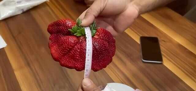 我们平日里吃的草莓小巧玲珑,嘴巴大的人一口吃两三个都不成问题,然而面对世界上最大的草莓,嘴巴再大的人也不能够保证可以一口吃掉。因为它大概有两个拳头大小,重量在289克左右,长度约18厘米,很多女孩子的手掌都不一定能有它大。该草莓还曾打破过吉尼斯世界纪录,当时很多人都在怀疑种植该草莓的以色列小哥,一定给草莓偷偷打了激素。但是事实并非如此,以色列小哥澄清道草莓之所以能长得如此之大,完全是因为天气寒冷延缓了草莓的发育进程,等到草莓彻底成熟的时候,它的个头就已经十分扎眼了。后来小哥也曾尝试过通过人工操控温度来延缓草莓的发育,但是始终没有种出来比289g更大的草莓,看来种出大草莓也是一件可遇不可求的事情啊!