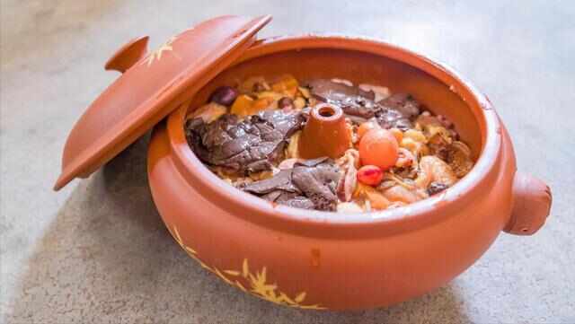 汽锅鸡是云南省建水县的特色名菜,是滇菜系的扛把子,2018年还被评为了云南十大经典名菜。这道美食因用汽锅蒸制而得名,汽锅是云南建水出产的一种特殊土陶蒸锅,在汽锅备好的情况下,这道菜的做法还是比较简单的。先将洗干净的鸡肉切成小块,然后跟葱姜盐等一同放入汽锅内盖好,接下来把汽锅放在盛满水的汤锅之上,开小火慢慢蒸就行了。汤锅产生的水蒸气会经由汽锅中央的汽嘴儿滴到锅内变成鸡汤,同时也能将鸡肉慢慢蒸熟,这样鸡肉的鲜味儿就会最大程度的保留下来。