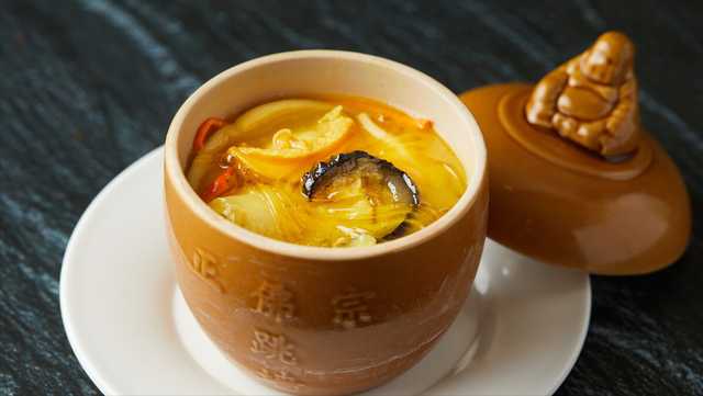 佛跳墙被称为“闽菜之王”,是福建人年夜饭桌上的硬菜。佛跳墙通常选用鲍鱼、海参、杏鲍菇以及蹄筋等食材,还需要加入高汤以及福建老酒,用小火煨制而成。成品佛跳墙软嫩柔润、荤而不腻,营养价值非常高。福建人将佛跳墙比喻为“天下第一菜”,也不是没有道理的。在新年将至备年货的时候,佛跳墙的销售额也变得十分可观,全国各地感兴趣的老铁们都愿意买些尝一尝,不过最正宗的还要数福建当地售卖的老牌儿佛跳墙。