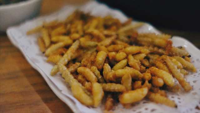 竹虫常年寄生在竹子上面,靠吮吸竹液为生。因其富含丰富的蛋白质、氨基酸、维生素、矿物质以及脂肪酸等等,所以被人们当作一种补品来吃。甚至还有人专门繁育竹虫,市场价卖到了上百元一斤。竹虫来回蠕动,让人看了确实没有什么食欲,但是稍作加工便可成为不可多得的美食。那么竹虫到底怎么吃才好呢?最常见的方法是油炸,一口下去嘎嘣脆,比薯片还要美味;另外还可以烤竹笋虫来吃,一次撸一串岂不美哉。