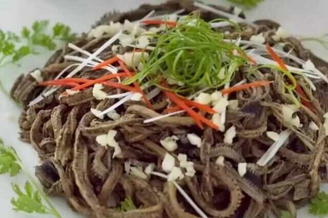 很多人听到蜈蚣这个名字就已经竖起了寒毛,更别说去尝试把这种东西当作一种美食了。但是在莆田却是一种难得的美味。据说海蜈蚣蛋白质含量高,而且还含有丰富的钙,具有一定的营养价值。海蜈蚣最长的能有1米长,细长的蠕动的海蜈蚣煲汤炒菜都十分鲜美,当地人堪称一绝。对于外地人来说那就是典型的黑暗料理了。