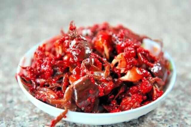 福州蟛蜞酱是极具福建特色的一种风味酱料。很多人大概还不知道蟛蜞是什么,其实蟛蜞就是一种形似螃蟹的河鲜。生存于河边的泥土小洞里。蟛蜞酱无论是用来蘸炸物还是炒菜吃,都十分美味。很多没试过的网友戏称说蟛蜞酱有一股很浓的肥皂味。再加上蟛蜞酱本身长得十分没有食欲,加上气味也比较特殊,这就劝退了大部分吃货了。