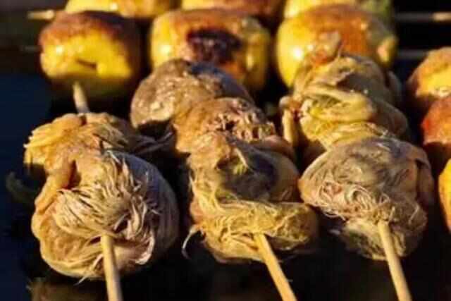 鸡仔胎又名毛鸡蛋,在漳州当地非常的受欢迎。刚刚准备破壳还没有出生的小鸡胚胎放大料和盐水烹饪,再蘸着着调好的料汁儿。本地人吃的那叫一个香。很多吃货都说毛鸡蛋有一股轻微的臭味,但是蘸着调料的毛鸡蛋把发酵的臭味变为鲜美。实在是很神奇,毛鸡蛋也是夜市大排档最受欢迎的小吃之一。夏天的傍晚,叫上亲朋好友,点一盘毛鸡蛋,再来两瓶啤酒,那真叫一个酸爽。不过对于外貌协会的人来说还是张不开嘴,毕竟毛鸡蛋的外貌实在是一言难尽。
