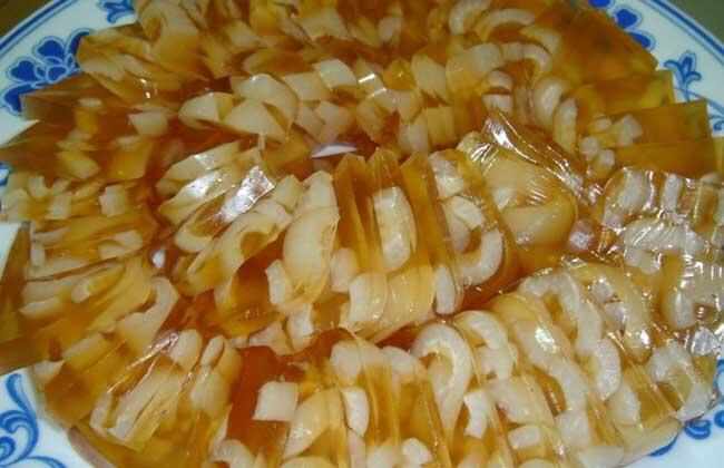 肉冻用猪皮制成,切成薄片片片晶莹剔透,食用起来十分有嚼劲,富含满满的胶原蛋白在口中碰撞。它十分适合皮肤干燥的人和女生食用,多吃可以促进造血和抗衰老。