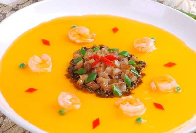 芙蓉海参是豫菜中的经典名菜,蒸制的鸡蛋羹加上烹饪好的海参,既是视觉的冲击也是味觉的享受。成菜的芙蓉海参,鸡蛋羹细腻柔嫩,口感轻盈,宛若云朵,海参脆滑鲜美,软糯香甜,是一道非常经典的名菜。