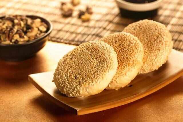 麻饼,是合肥传统四大名点之一,历史悠久。麻饼又名“金钱饼”,风味可口,也有吉祥如意的美好寓意,它是用面粉和麻油等食材制作而成的美味糕点。芝麻香气浓郁,皮薄芝麻多,味美可口,地地道道的安徽风味。