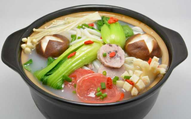 提到云南的小吃,过桥米线肯定是一大特色。云南有很多地方都都喜欢吃米线。不同的配料加上不同的浇头,也会有不同的口感,过桥米线就是其中非常有代表性的一样小吃。先端上来的是肥鸡和猪骨精心熬制的高汤,色泽金黄,表面浮着一层鸡油,滚烫鲜美,看似平静的外表下却蕴含着极大的热量。虽然表面看起来平平无奇,但是加上其他的配料,相辅相成,在舌尖绽放的美味令人回味无穷。其次端上来的是一些蔬菜,如小青菜、豌豆尖等,还有切得很薄的鸡肉片、猪肉片,鹌鹑蛋,最后再端上来一碗Q弹劲道的米线。这些食材被依次下入装着高汤的大碗中,高汤的热量足以将它们烫熟,又保留着最大的鲜味。蔬菜的新鲜脆爽,鸡肉片和猪肉片的荤香,再加上米线的滑爽弹牙,非常可口!