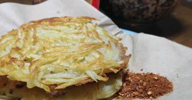 洋芋粑粑也是云南大街小巷大小摊子上常见的小吃,可以当早饭吃,也可以当零嘴,外表被炸得金黄透亮,看起来酥脆异常。尝起来也是满口酥香,裹着一层淀粉的土豆块,外表被炸得酥脆,吃到嘴里,外酥里绵,外表的酥脆和内里土豆的绵软形成了鲜明的对比,再加上各种酱料、辣椒油的调味,也是别有风味。