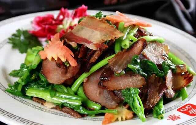 腊肉炒菜薹是楚菜中的传统菜品之一。它选用腌制过的腊肉和新鲜的菜薹,经过炒制而成。这道菜腊肉的咸香与菜薹的鲜嫩相互融合,口感丰富,是一道美味可口的下饭菜。