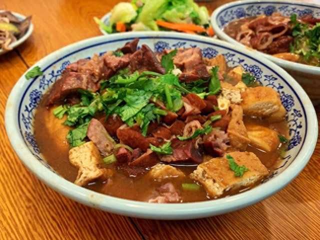 6. 卤煮火烧:北京的传统小吃之一,汤汁浓郁,火烧松软,是许多人的最爱。在老北京卤煮火烧店可以品尝到正宗的卤煮火烧。