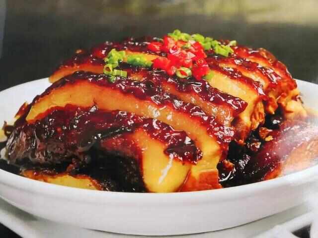 陕西槽肉是陕西的传统名菜之一,选用五花肉为主料,经过多次糖色、炖煮、蒸制等工序,形成红亮酥烂的色泽和浓郁的香味。这道菜品肥而不腻,瘦肉不柴,是一道美味佳肴。