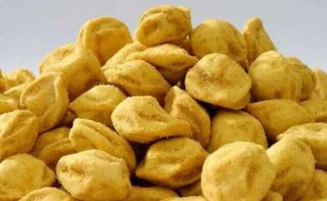 天津崩豆是用蚕豆加上冬笋,冬菜等食材制作而成,吃起来香脆可口,味道十分浓郁,是天津有名的传统小吃,起源于清朝嘉庆年间。