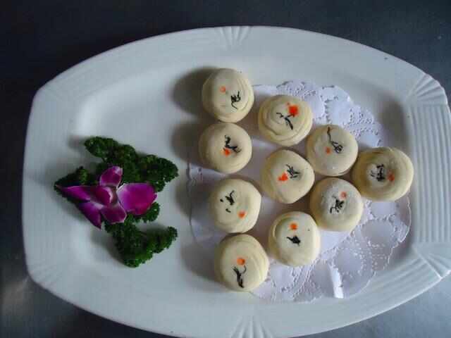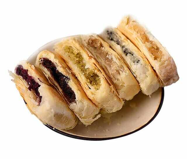 太师饼又名茶花点心,是荆门市的传统点心。这种酥皮点心,色泽白中透黄,泡松,馅心香甜,成熟后,酥层清晰,表面粘有数粒茶米(或黑芝麻)与点心本色相映衬,更有正中朱红一点,朴素典雅的情趣,故名“茶花点心”。太师饼以精粉、熟猪油揉和为皮,面粉、熟猪油为酥,若做素点就用麻油而不用猪油。再用熟面粉‘砂糖’桂花橘饼、桃仁、冬瓜糖等为馅,经过擀皮包馅成型后,放白色的温猪油中,入中火上吞炸,现炸现品或入烤炉烘熟,吃起来酥松清香,软绵不腻,风味别具一格。